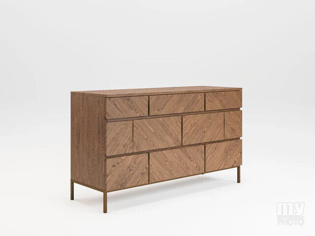 The Lima shelving unit features a ply and veneer carcass in light walnut finish with drawers and met